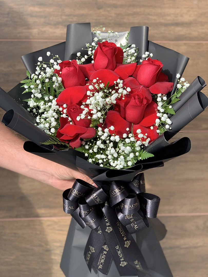 Tamanho P composto por 6 rosas mais gipsofila (mosquitinho)